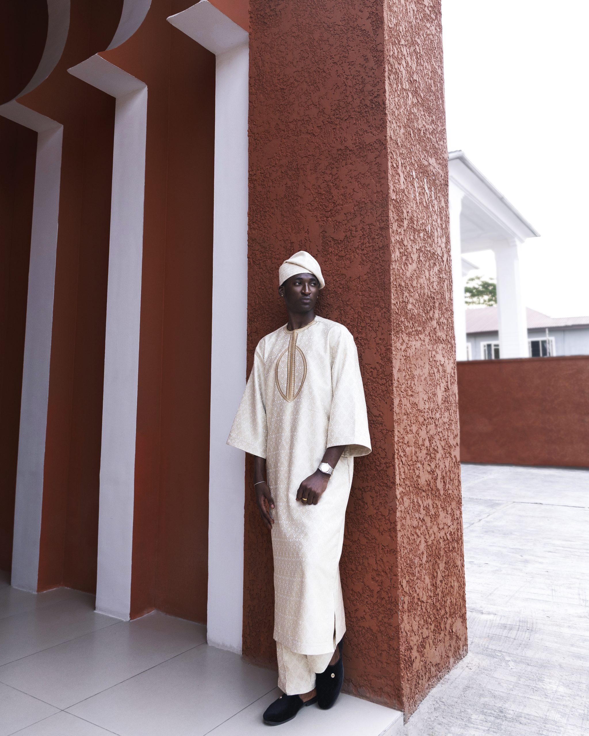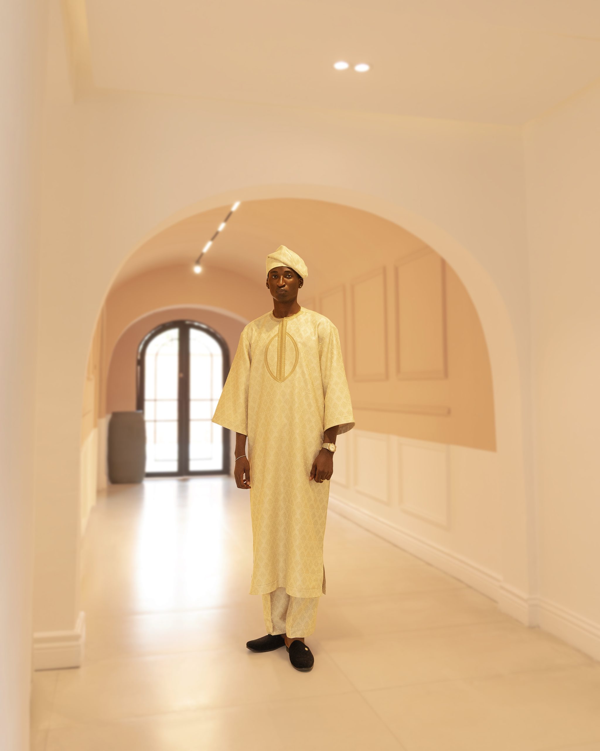 Sophisticated and deeply textured, the Olowo Eko Kaftan is made from luxurious Jacquard fabric, known for its intricate woven patterns and elite feel. The embroidery is delicately executed, highlighting the fabric’s natural richness without overwhelming it.